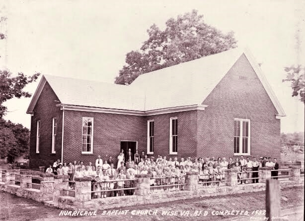Hurricane Baptist Church in 1932 after the completion of renovations to the building and the addition of the stone barrier around the yard of the church.